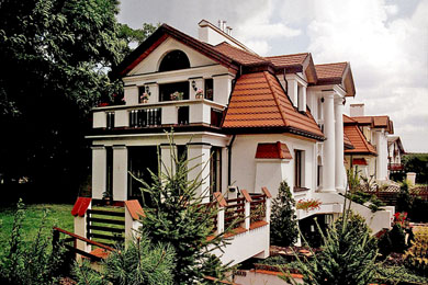Zależało mi na tym, by powstał optycznie prawie parterowy dworek mimo zawartych w nim czterech kondygnacji. Zagłębione przyziemie skryło się za ogrodzeniem złożonym z białych murów i ciemnych drewnianych przęseł, zaś parter osłonił dach polski łamany dopełniając tradycyjną w swym wyrazie bryłę.